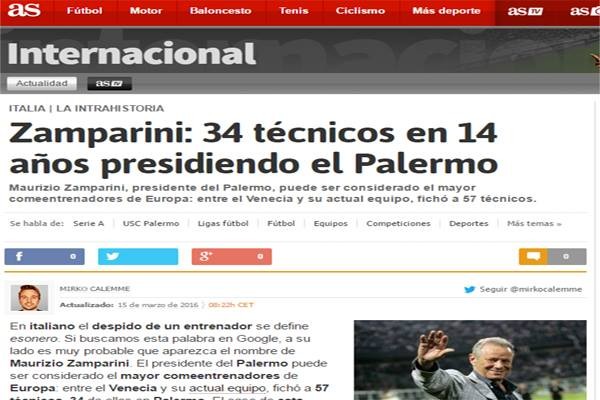 La fama di "mangia allenatori" del presidente del Palermo, Maurizio Zamparini, fa il giro del mondo. Oggi, ad esempio, ne...