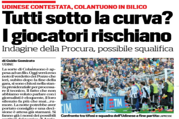 Stando a quanto riporta l'edizione odierna de "Il Corriere dello Sport" i giocatori dell'Udinese rischierebbero la squalifica per aver avuto...