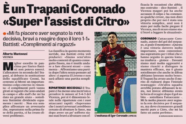 "«Mi fa piacere aver segnato la rete decisiva, bravi a reagire dopo il loro 1-1» Battisti: «Complimenti ai ragazzi» Alberta...