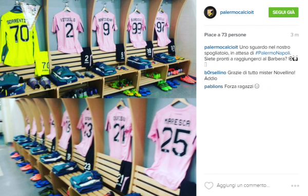 Il profilo Instagram del Palermo ha appena pubblicato questa foto dello spogliatoio con le maglie dei giocatori rosanero, in vista...