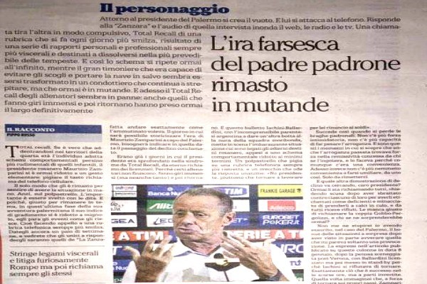 “Attorno al presidente del Palermo si crea il vuoto. E lui si attacca al telefono. Risponde alla “Zanzara” e l’audio...