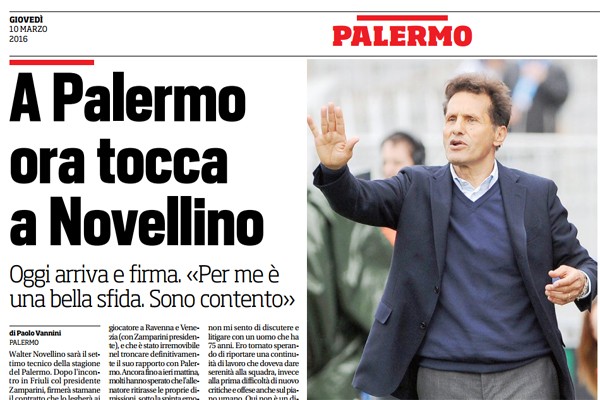 "Walter Novellino sarà il settimo tecnico della stagione del Palermo. Dopo l'incontro in Friuli col presidente Zamparini, firmerà stamane il...