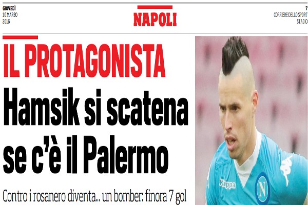 Corriere dello Sport: “Il protagonista Hamsik si scatena se c’è il Palermo. Contro i rosanero diventa…un bomber: finora 7 gol”