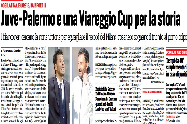 L'edizione odierna de Il Corriere dello Sport in vista della finalissima al Torneo di Viareggio tra Palermo e Juventus mostra...