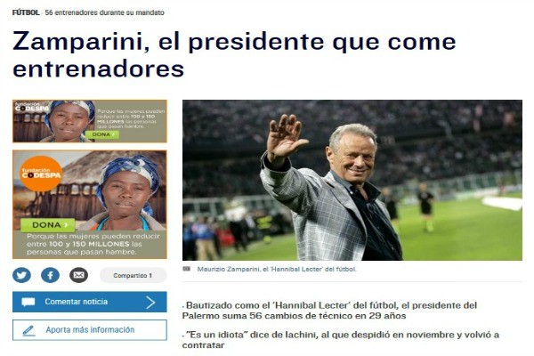 Zamparini fa notizia anche in Spagna: “l’Hannibal Lecter degli allenatori colpisce ancora”