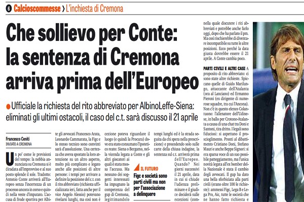 Gazzetta dello Sport: “Dirty Soccer: Il portiere Melillo l’unico assolto. Sconti a L’Aquila e Pro Patria. Piange Di Napoli: 3 anni e 6 mesi”