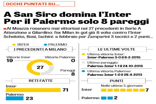 L'edizione odierna de "La Gazzetta dello Sport" fa il punto sui precedenti tra Inter e Palermo a "San Siro". Ecco...