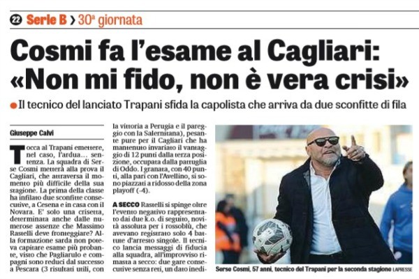 “Tocca al Trapani emettere, nel caso, l’ardua… sentenza. La squadra di Serse Cosmi metterà alla prova il Cagliari, che attraversa...
