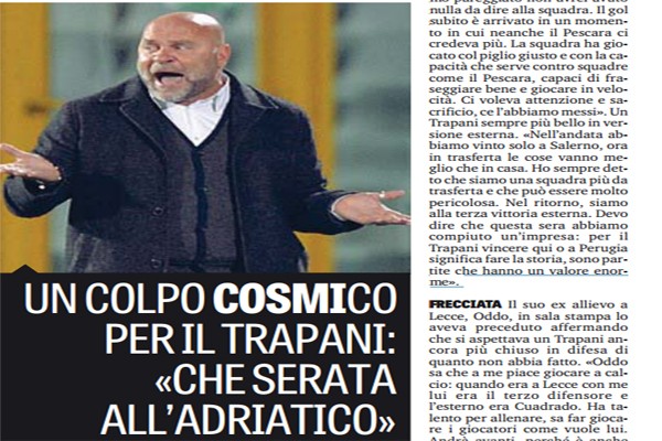 "Serse Cosmi sorridente e disteso, una versione del tecnico perugino di cui raramente si può godere dopo una partita. Segno...