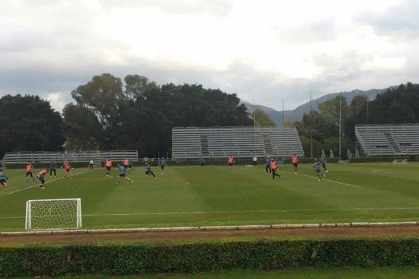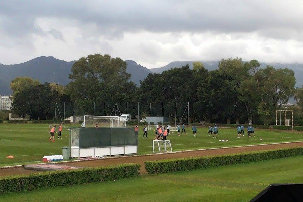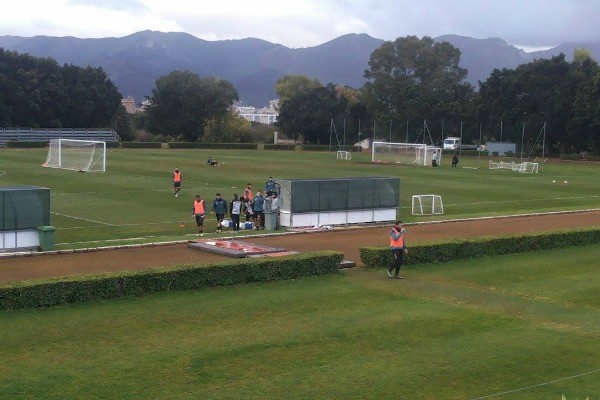 Dopo aver svolto il riscaldamento e gli esercizi col pallone, i rosanero stanno effettuando una partitella a campo ridotto.