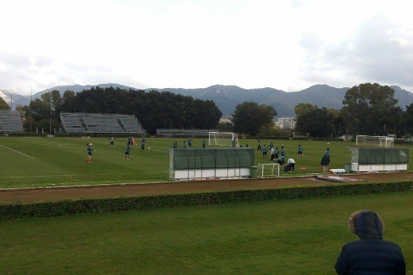 La prima parte dell'allenamento rosanero si sta svolgendo con esercizi con la palla. Tutto il gruppo, a parte Trajkovski, Chochev e...
