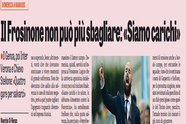 "Dopo i due giorni di riposo concessi da Stellone per le festività pasquali, nel pomeriggio il Frosinone tornerà in campo...