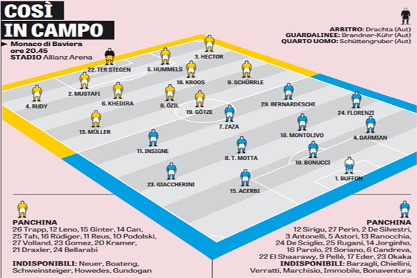 Gazzetta dello Sport: le probabili formazioni di Germania-Italia