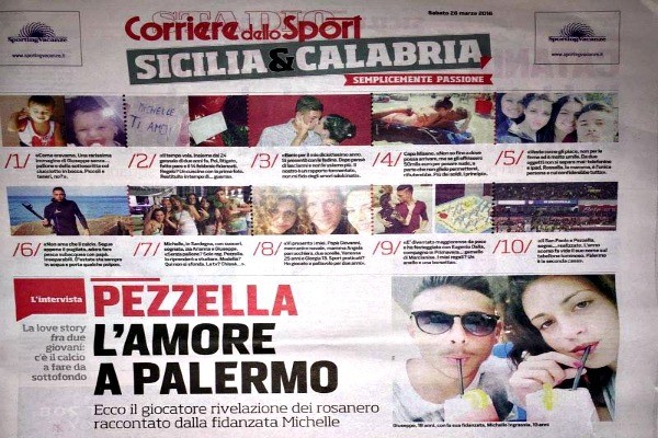 Corriere dello Sport, Pezzella e l’amore a Palermo. Parla la fidanzata: «Dalle partite giocate per strada alla serie A, sta vivendo un sogno»