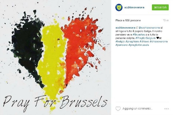 Instagram Chievo Verona: “Pray for Bruxelles” (FOTO)