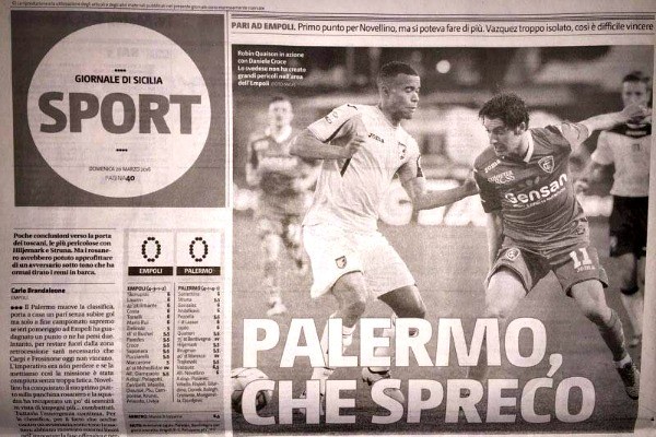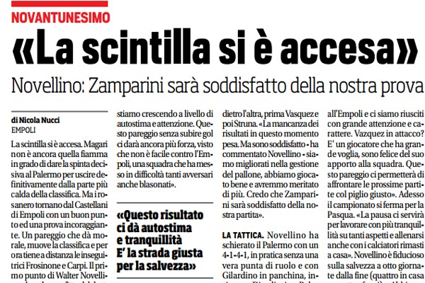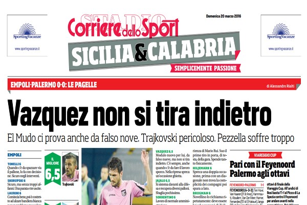 L'edizione odierna de "Il Corriere dello Sport" ha stilato el apgelle del pareggio conquistato dal Palermo contro l'Empoli nell'anticipon di...