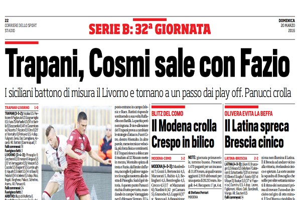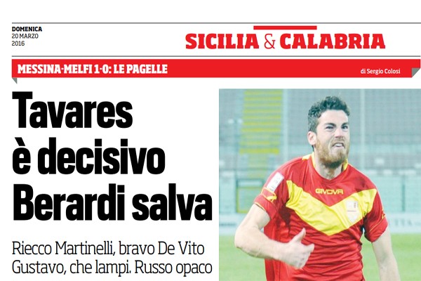 Corriere dello Sport: “Tavares spinge il Messina. Il Melfi con l’incubo play out – le pagelle”