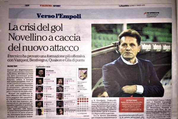 "Vazquez falso nove è qualcosa di più di una semplice idea. Walter Novellino ci sta pensando. Il tecnico del Palermo...