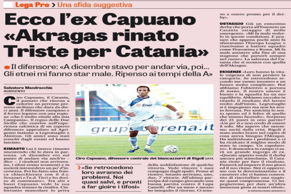 "Ciro Capuano, il Catania, il passato che ritorna a colorire un perenne presente siciliano che dura da dieci anni. Il...