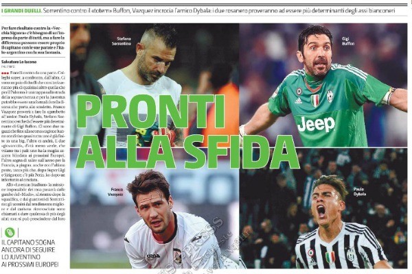 Queste le prime pagine dei principali quotidiani sportivi nazionali di oggi, venerdì 15 aprile 2016.