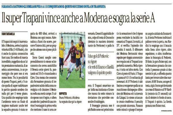 "Il Trapani dei sogni è inarrestabile. A Modena, arriva la quinta vittoria di fila (1-4 il finale), che è anche...