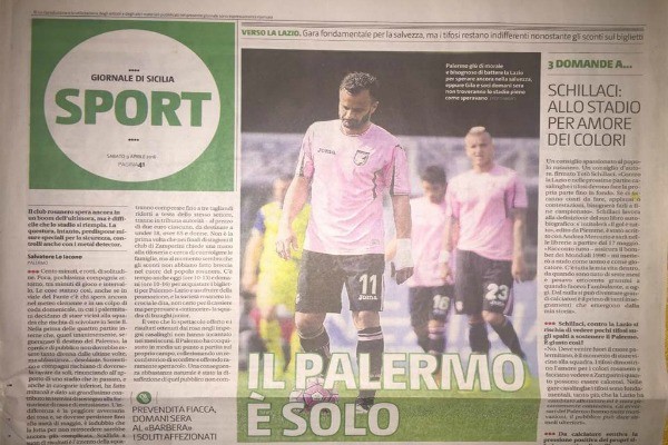 "Il Palermo è solo" titola l'edizione odierna de "Il Giornale di Sicilia". Domani sera, contro la Lazio, al "Barbera" si...