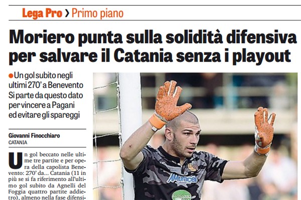 "Un gol beccato nelle ultime tre partite e per opera della capolista Benevento: 270’ da... Catania (11 in più se...