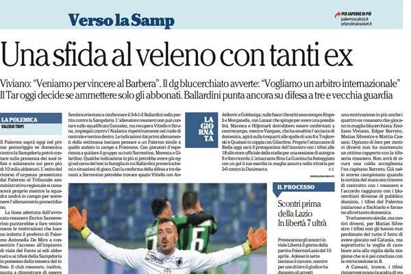 Domenica pomeriggio, dalle ore 15, il Palermo sfiderà in quel dello stadio "Renzo Barbera" la Sampdoria. Quella tra i rosanero...