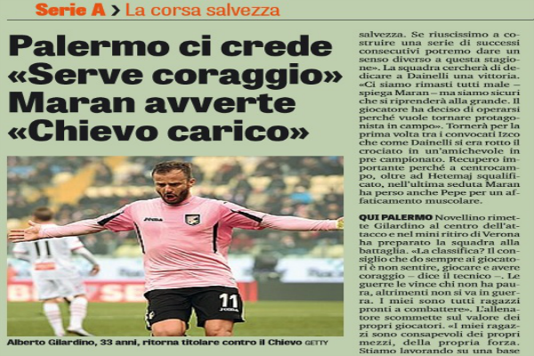 Gazzetta dello Sport: ecco perchè vedere Chievo Verona-Palermo…