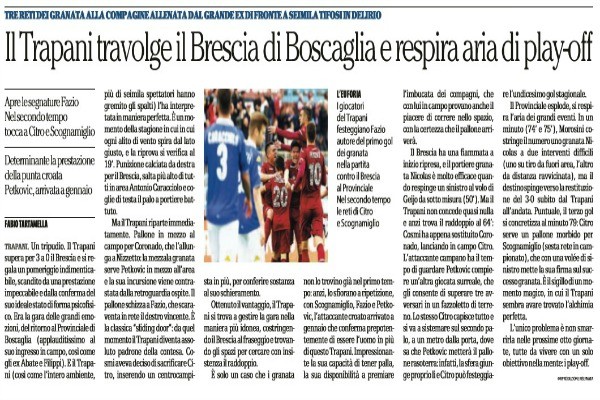 "Un tripudio. Il Trapani supera per 3 a 0 il Brescia e si regala un pomeriggio indimenticabile, scandito da una...