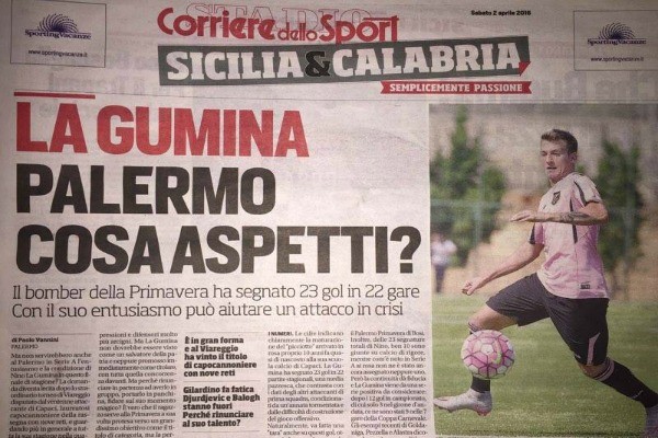 Intervistato ai microfoni di "Italiacalcio.it" Leonardo Cornacini agente di Nino La Gumina ha così parlato dell'attaccante rosanero: «E' un giocatore...