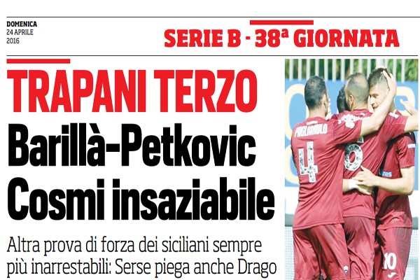 "Il Trapani vuole ora la nona, ma, intanto, si gode l'ottava vittoria consecutiva (eguagliato record di serie B di Juventus...