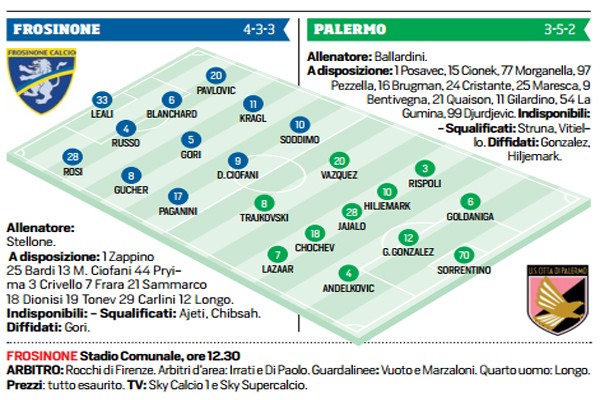 Gazzetta dello Sport: le probabili formazioni di Frosinone-Palermo (FOTO)
