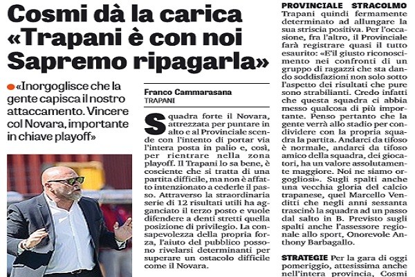 "Squadra forte il Novara, attrezzata per puntare in alto e al Provinciale scende con l’intento di portar via l’intera posta...