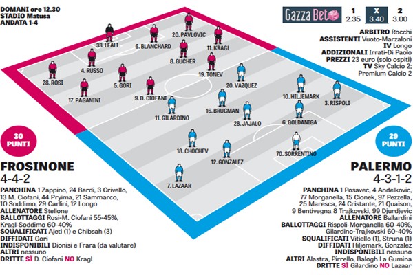 Tuttosport: le probabili formazioni di Frosinone-Palermo