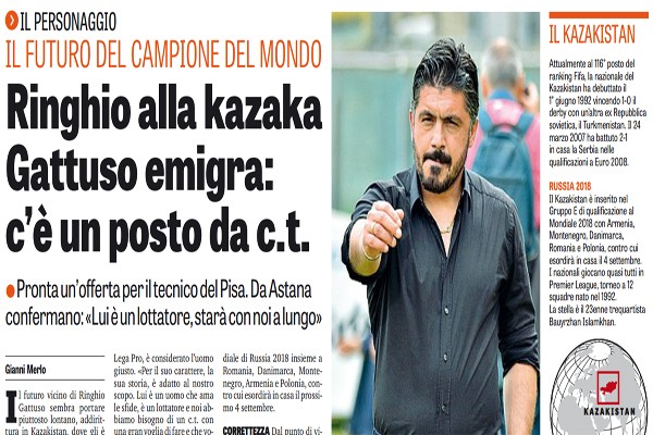 "Il futuro vicino di Ringhio Gattuso sembra portare piuttosto lontano, addirittura in Kazakistan, dove gli è stata fatta un’offerta importante:...