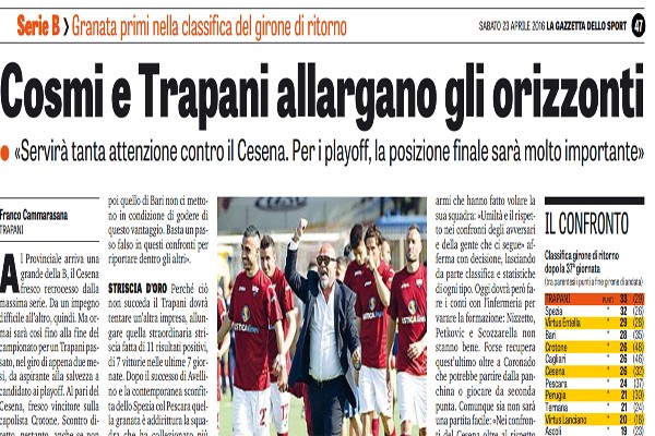 "Al Provinciale arriva una grande della B, il Cesena fresco retrocesso dalla massima serie. Da un impegno difficile all’altro, quindi....