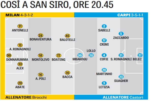Questa sera si giocherà il posticipo del 34° turno di serie A. Di scena a "San Siro" andrà Milan-Carpi, con...