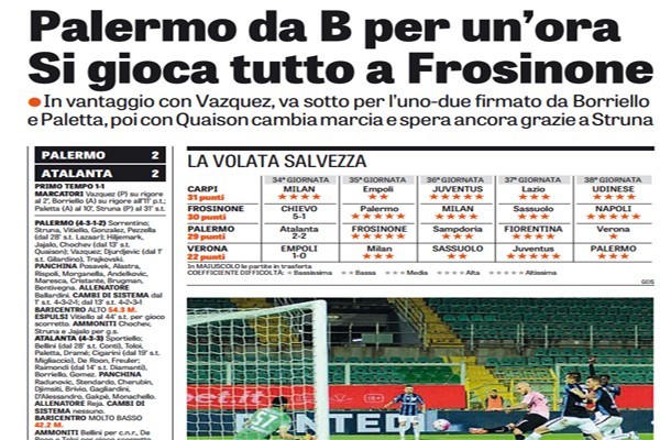 Gazzetta dello Sport: “Palermo-Atalanta, è un match che passerà alla storia. Ecco perché…”