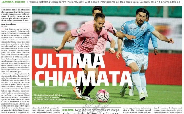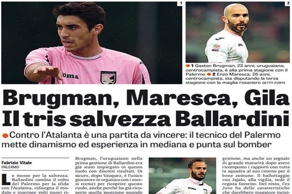 Gazzetta dello Sport: “Brugman, Maresca e Gila, il tris salvezza di Ballardini: il tecnico del Palermo mette dinamismo ed esperienza in mediana e punta sul bomber”