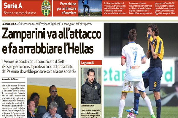 "Zamparini attacca, il Verona risponde. Impossibile far finta di niente dopo le accuse del presidente del Palermo, che ieri nella...