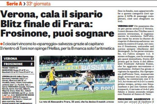 "Cinque partite alla fine, penultimo posto in classifica a due punti dal Frosinone e tre dal Carpi. Servirà un’impresa, forse...