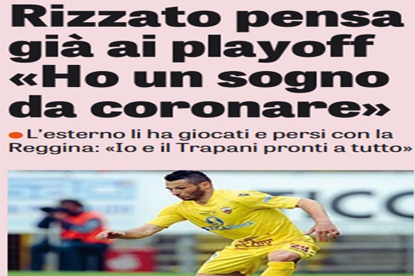 Gazzetta dello Sport: “Rizzato pensa già ai playoff: «Ho un sogno da coronare». L’esterno li ha giocati e persi con la Reggina: «Io e il Trapani pronti a tutto»”