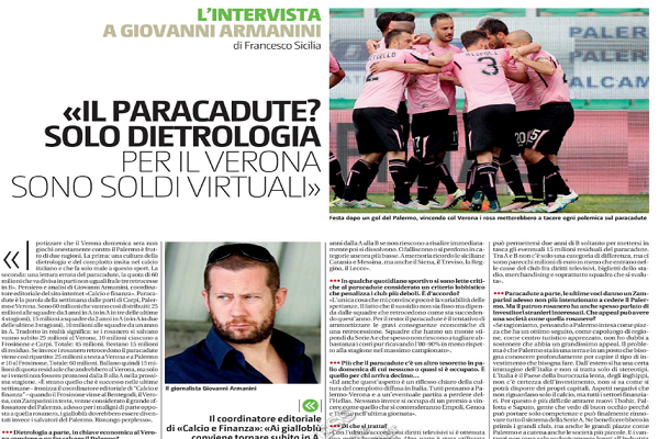 Intervistato dalle colonne de "Il Giornale di Sicilia" Giovanni Armanini, coordinatore del sito “Calcio&Finanza” si è espresso in merito al...