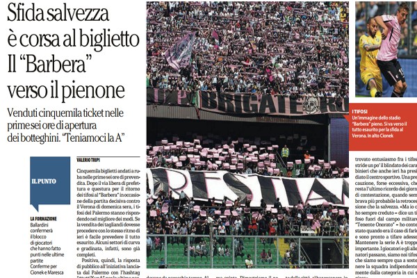 Primo giorno con buonissimo riscontro per la vendita dei biglietti di Palermo-Verona. Dalle ore 12 di ieri sono stati comperati...