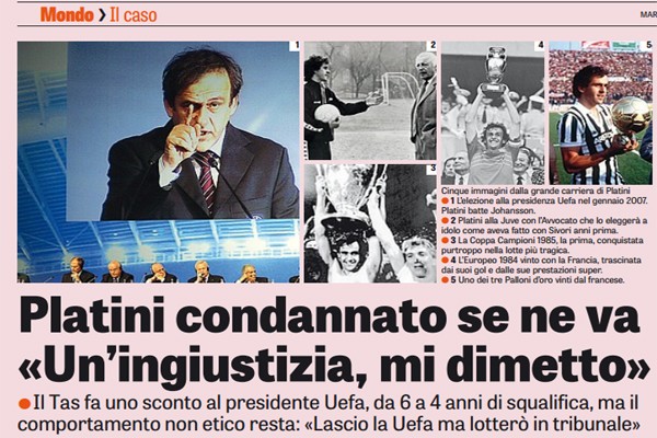 "«Mi dimetto». Sembra proprio finita per Michel Platini. Il Tas ha forse scritto l’ultimo capitolo, il più drammatico, della brutta...