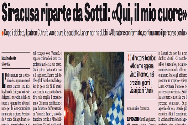 "L’ubriacatura per la vittoria del campionato non è stata ancora smaltita. Negli occhi dei giocatori e dei dirigenti il muro...