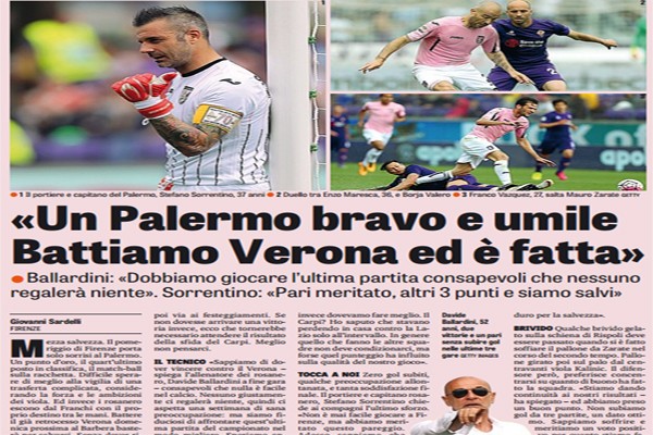 L'edizione odierna de "La Gazzetta dello Sport" ha stilato le pagelle dei rosanero in merito al match pareggiato ieri contro...