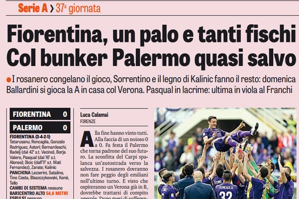 "Mezza salvezza. Il pomeriggio di Firenze porta solo sorrisi al Palermo. Un punto d’oro, il quart’ultimo posto in classifica, il...