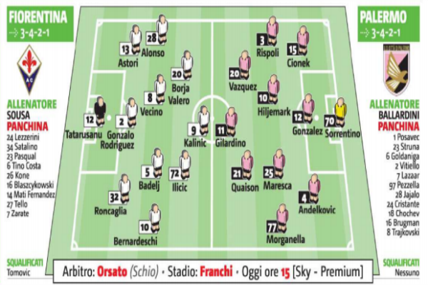 Match che può valere una stagione per i rosanero quello di quest'oggi contro la Fiorentina. Ballardini si affida all'usato sicuro:...